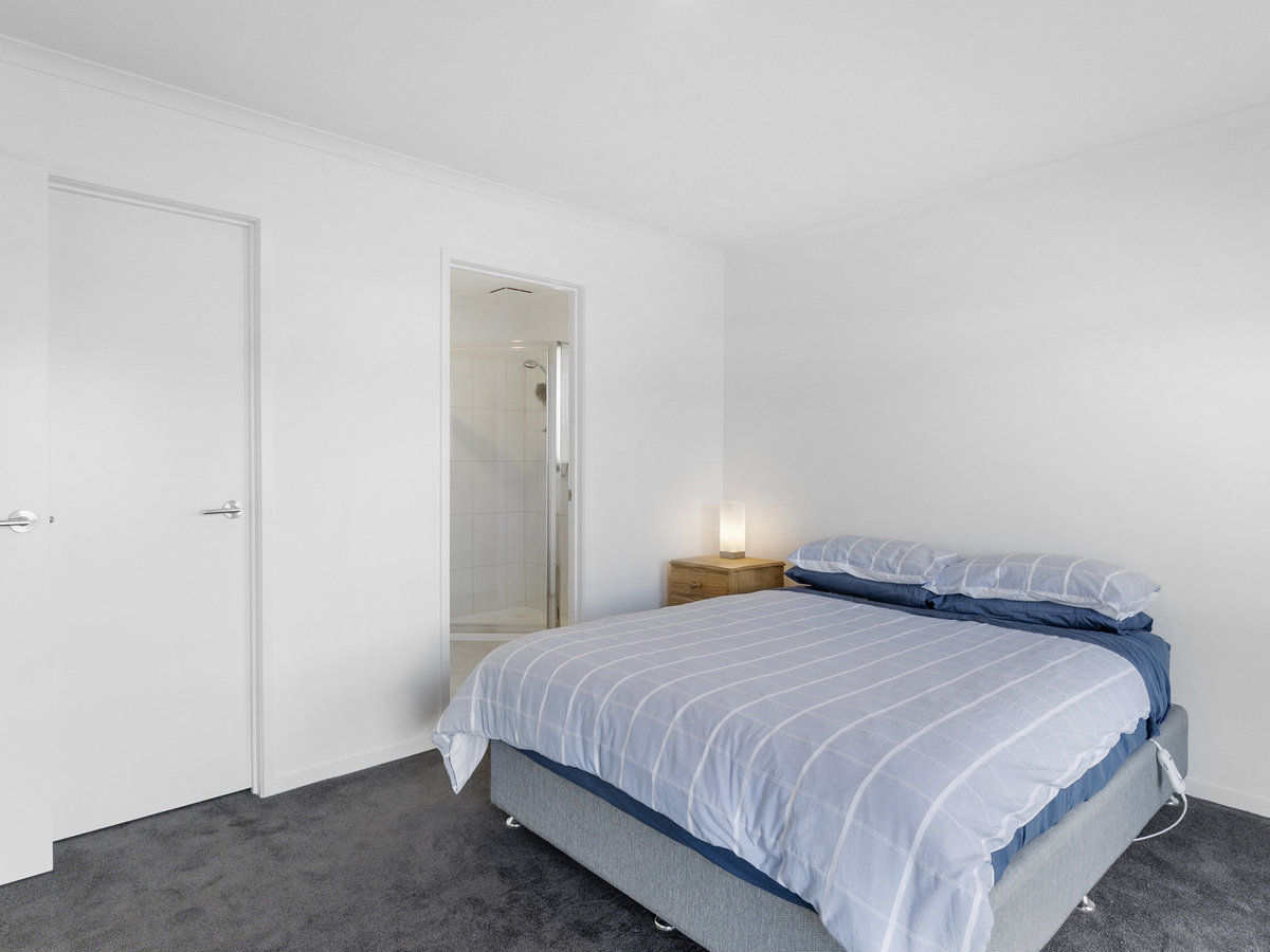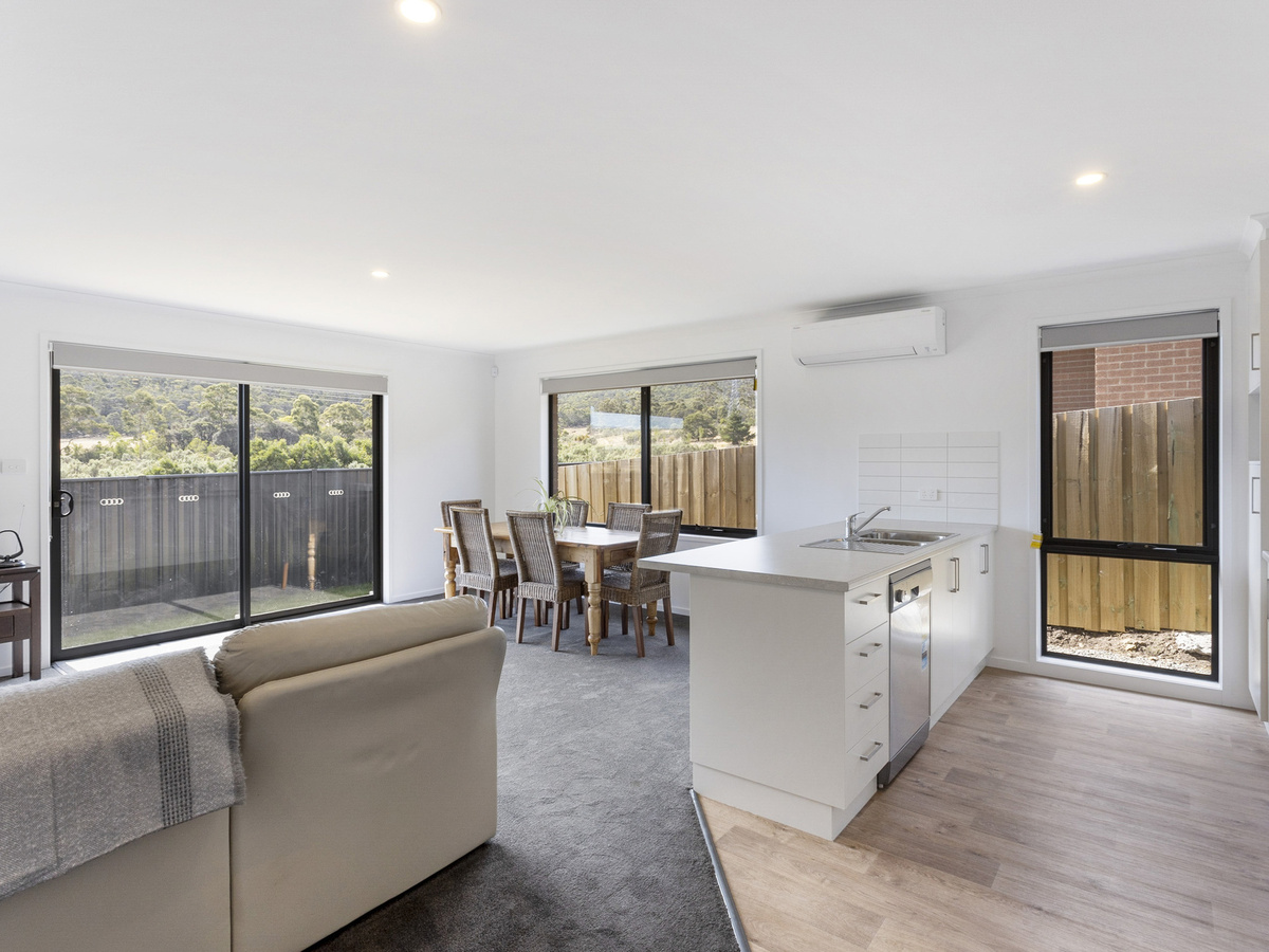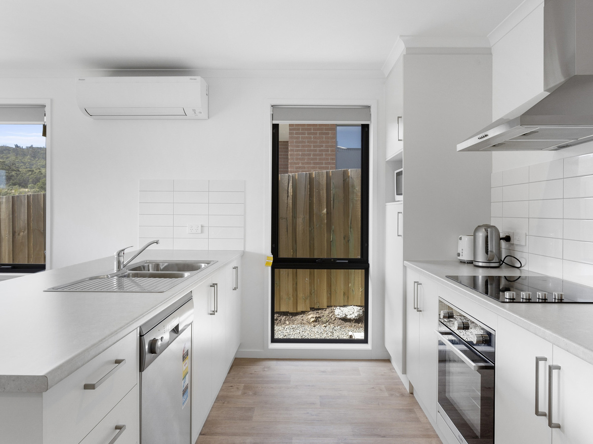 The home offers, a spacious, light filled, open plan living area with heat pump, adjoining the well-designed kitchen with dishwasher. There are three bedrooms, two with built in wardrobes and the master with walk in wardrobe and ensuite. The large family bathroom has a separate shower and bath and there are also separate laundry and toilet areas.